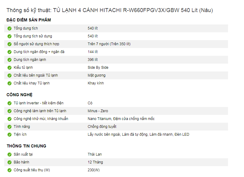 TỦ LẠNH 4 CÁNH HITACHI R-W660FPGV3X/GBW 540 Lít (Nâu)